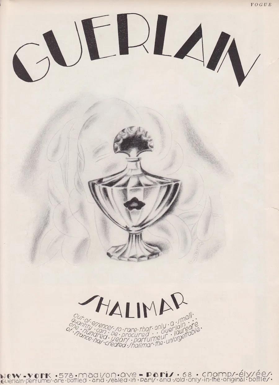 從這天起,一款香水將永載史冊,從嗅覺魔術到視覺藝術。它就是Shalimar。它如此成功,以至于香水評論家盧卡·圖林戲謔到:“或許世界上最多的單一香水類型就是‘失敗的Shalimar’——人人都想嘗試,但沒有誰能接近?!?/p>