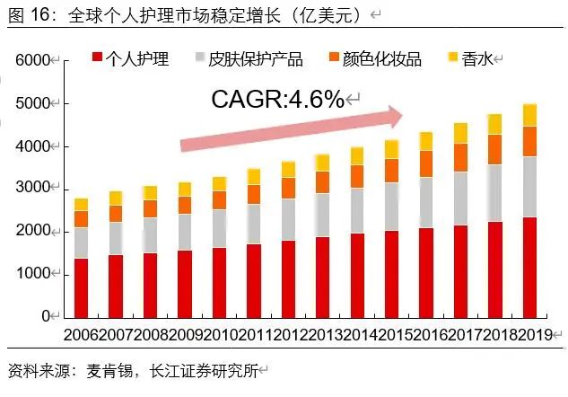日用市場:全球日化市場穩(wěn)定增長,相關香精香料需求穩(wěn)定上行。據(jù) Data Bridge 預測,隨著洗滌劑功能化需求提升以及新興市場需求快速增長,預計全球液體洗滌劑市場規(guī)模仍有望保持高速增長,相關洗滌用品香精香料需求有望提升。全球化妝品市場在過去能夠保持穩(wěn)定增長,從 2005 年到 2019 年,全球化妝品市場銷售額從約 2670 億美元增長到約 5000 億美元,年均復合增速約為 4.6%。化妝品市場需求穩(wěn)定增長,相關日化型香精香料產(chǎn)品市場需求有望維持穩(wěn)定增長。