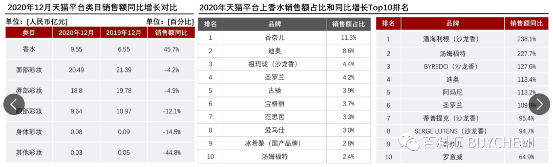 與2019年12月相比,2020年由于疫情需要佩戴口罩,臉部被遮擋導(dǎo)致消費者化妝需求減少。作為個人風(fēng)格和精致度的體現(xiàn),香水在疫情期間成為彩妝的替代品,2020年12月香水的銷售額同比增長45.7%。