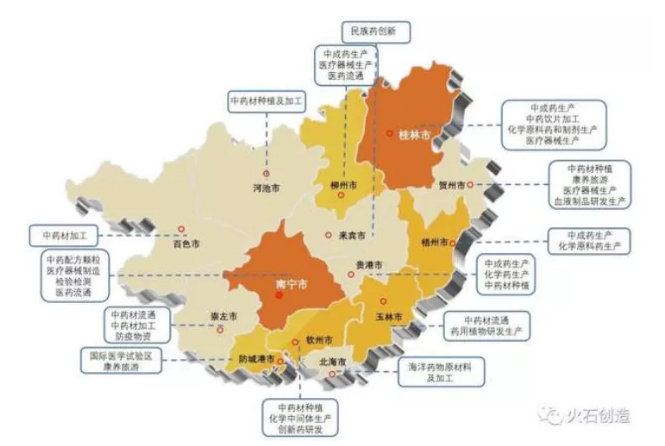 圖1:廣西中醫(yī)藥產(chǎn)業(yè)分布圖(來(lái)源:火石創(chuàng)造)