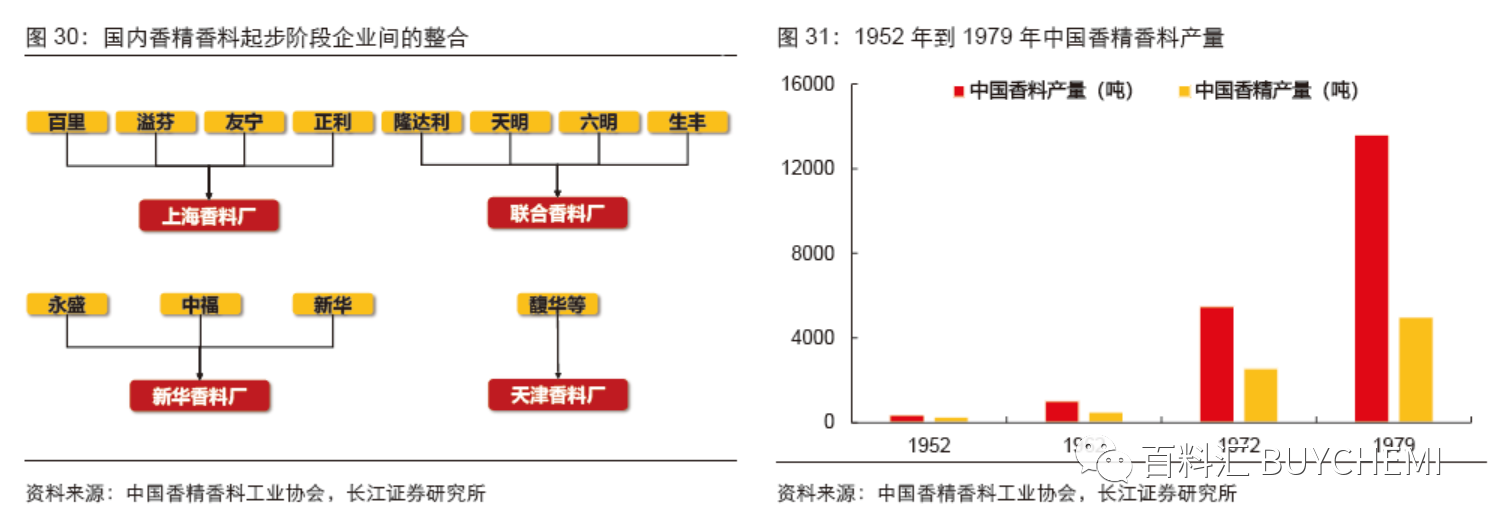 起步階段(1950-1979):建國(guó)前,我國(guó)合成香料工業(yè)規(guī)模較小,當(dāng)時(shí)主要是國(guó)內(nèi)的香精廠(鑒臣、百里和嘉福)通過(guò)進(jìn)口香料和香基,調(diào)配成香精出售。解放后,國(guó)內(nèi)的小型香精香料企業(yè)紛紛設(shè)立和合并,形成了一個(gè)以上海及部分沿海城市為中心的合成香料工業(yè)群體。在此階段,國(guó)內(nèi)香精香料企業(yè)逐步嘗試合成新型產(chǎn)品。