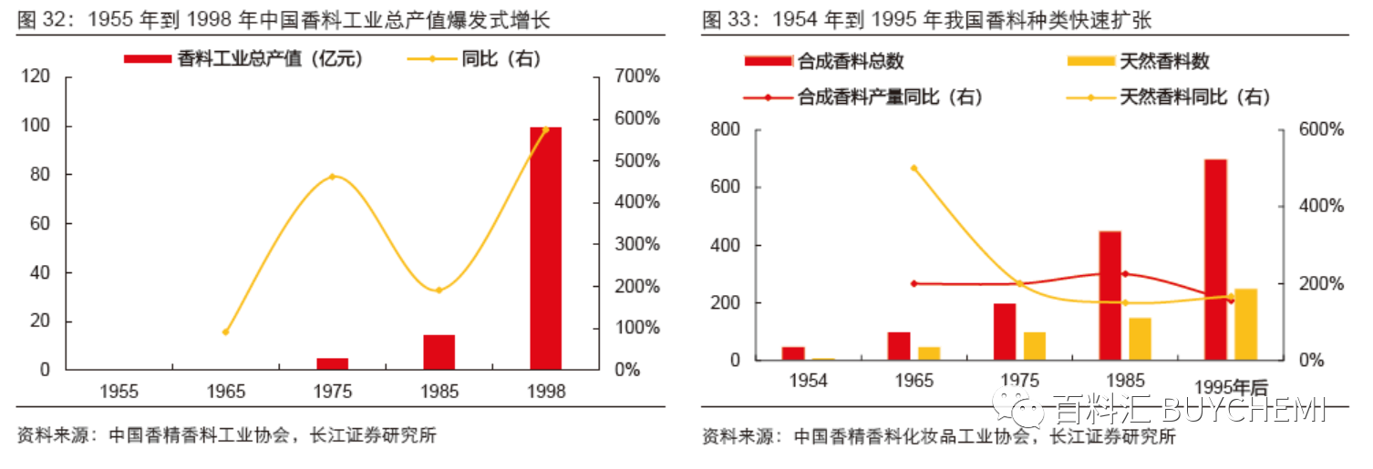 快速發(fā)展階段(1980-1999):改革開(kāi)放后,中國(guó)的合成香料工業(yè)進(jìn)入快速發(fā)展階段。此階段,我國(guó)合成香精香料主體從國(guó)營(yíng)企業(yè)逐步走向市場(chǎng)化,民間資本進(jìn)入香料工業(yè),促進(jìn)香料工業(yè)進(jìn)入爆發(fā)式增長(zhǎng)階段。同期,我國(guó)合成香料和天然香料種類(lèi)數(shù)量快速擴(kuò)張,新型合成香料如乙基麥芽酚、甲基紫羅蘭酮、多環(huán)麝香、大環(huán)麝香等開(kāi)始逐步涌現(xiàn)。