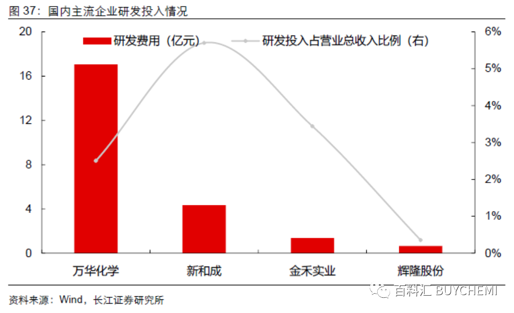 注重研發(fā)投入,布局內(nèi)生增長(zhǎng)動(dòng)力。目前,萬(wàn)華化學(xué)、新和成和金禾實(shí)業(yè)在研發(fā)端布局較高,2019 年新和成、萬(wàn)華化學(xué)和金禾實(shí)業(yè)研發(fā)投入占營(yíng)業(yè)總收入比例達(dá)到5.7%、2.5%和3.4%。中國(guó)合成香料龍頭企業(yè)在研發(fā)端投入增加,逐步拓展新的產(chǎn)品和合成工藝,打造多元一體化供應(yīng)能力,形成企業(yè)核心競(jìng)爭(zhēng)力。