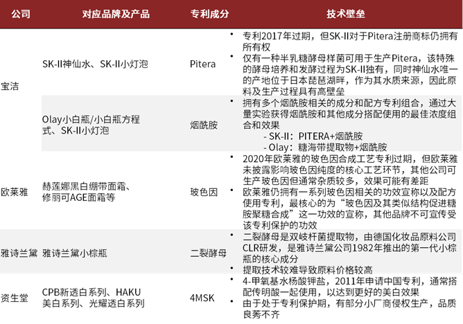 持續(xù)的研發(fā)投入,擁有核心技術(shù)或?qū)@煞帧?/strong>對于功效性護膚品,核心成分及其應(yīng)用是產(chǎn)品力的重要支撐??v觀頭部功效性護膚品牌發(fā)展歷程,大多經(jīng)歷了長期的研發(fā)積累,在品牌發(fā)展過程中亦不斷地進行研發(fā)投入,持續(xù)鞏固競爭壁壘。