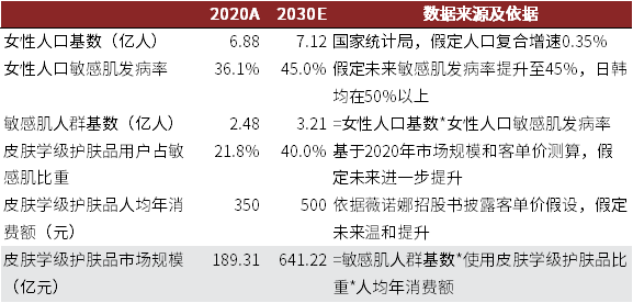 狹義市場:我們首先基于敏感肌人群,測算狹義的皮膚學(xué)級護膚品市場潛在規(guī)模,我們采用自下而上和自上而下兩種方法測算。