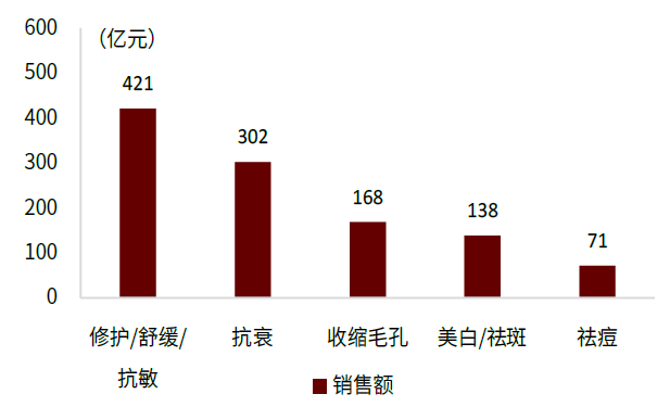 圖表: 阿里系功效性護膚品主要細分市場及規(guī)模
