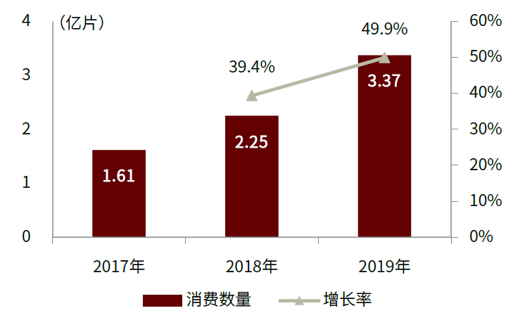 圖表: 中國貼片式醫(yī)用皮膚修復(fù)敷料的消費量