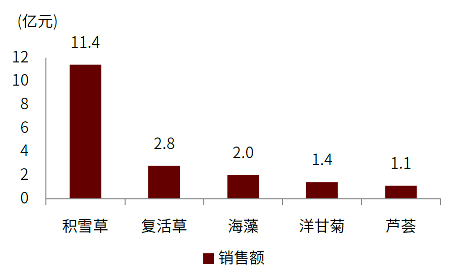 資料來源:淘寶網(wǎng),中金公司研究部;注:圖中銷售額數(shù)據(jù)口徑為天貓旗艦店銷售額第一單品