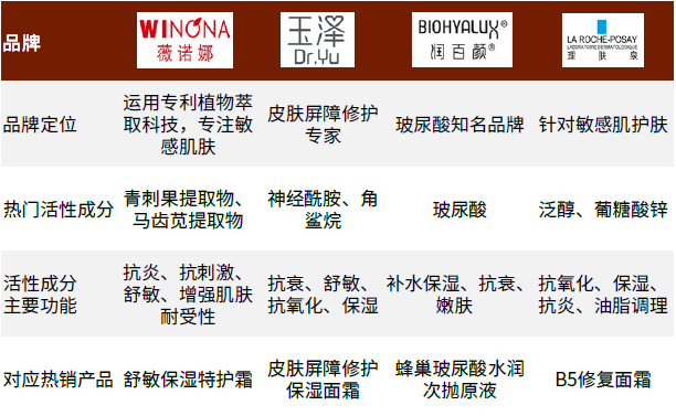 ? ①差異化定位:對本國消費者膚質(zhì)的深入了解帶來更突出的產(chǎn)品力。薇諾娜、玉澤及轉(zhuǎn)型成功的理膚泉主打修復(fù)皮膚屏障、提升耐受性等,在舒緩基礎(chǔ)上增加治療屬性,功能性較強,且消費者使用后效果很快可以體現(xiàn);