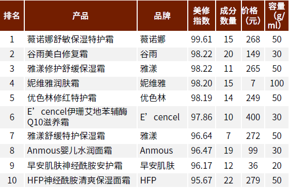 圖表: 消費者最關(guān)注的精簡產(chǎn)品中TOP10面霜