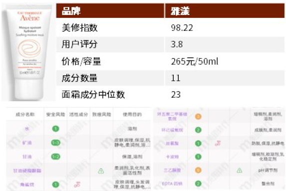 圖表: 典型精簡產(chǎn)品 - 雅漾修護舒緩保濕霜