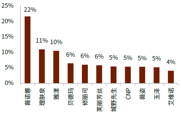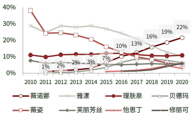 圖表: 國內(nèi)功效性護膚品品牌市占率情況(2020)