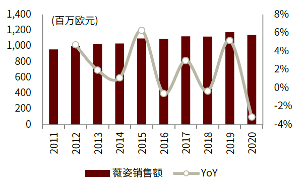 國貨替代趨勢明顯:傳統(tǒng)舒緩定位品牌受擠壓,國貨多定位強功能性。從結(jié)構(gòu)變化來看,國貨替代趨勢明顯,其中薇諾娜異軍突起,市場份額從2014年的3%提升19ppt至2020年22%。