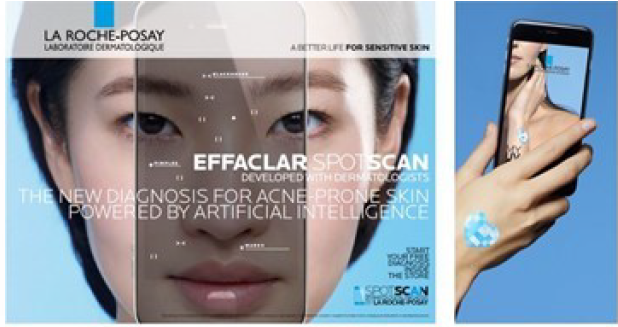 渠道上,深耕專業(yè)渠道的同時,發(fā)力大眾市場,新增電商及線下渠道:線上于2016年入駐天貓,抓住電商發(fā)展的黃金時段,帶動整體銷量實現(xiàn)跨越式增長;門店推出ADVANCED SKIN SCOPE智能皮透儀,可定制科學(xué)護膚方案,實現(xiàn)線下引流。