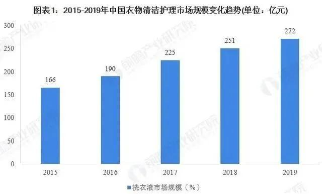 據(jù)弗若斯特沙利文統(tǒng)計(jì)調(diào)研數(shù)據(jù)顯示,2015年以來,我國(guó)洗衣液市場(chǎng)零售總額持續(xù)增長(zhǎng),到2019年底,全國(guó)洗衣液市場(chǎng)零售總額增長(zhǎng)至272億元,年均復(fù)合增長(zhǎng)率為13.1%。