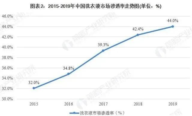 從洗衣液滲透率來看看,目前,我國(guó)洗衣液越來越受到消費(fèi)者的偏好。2015年以來,我國(guó)洗衣液市場(chǎng)滲透率已由32.0%增長(zhǎng)至44%,提高十多個(gè)百分點(diǎn)。從走勢(shì)來看,洗衣液逐步替代洗衣粉,成為我國(guó)主要洗滌劑已成定局。