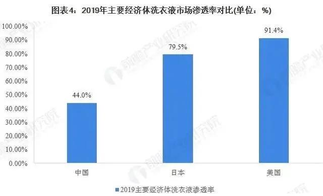 2019年,美國(guó)洗衣液市場(chǎng)滲透率為91.4%,日本洗衣液市場(chǎng)滲透率為79.5%,由此可見,我國(guó)洗衣液市場(chǎng)仍具有較大提升空間。