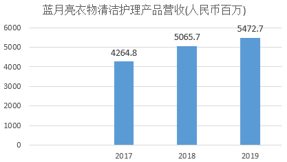 品牌競爭力的形成,也帶來了營業(yè)規(guī)模的持續(xù)增長。根據(jù)弗若斯特沙利文報告,藍月亮在中國洗衣液市場的市場份額連續(xù)11年(2009年至2019年)位居第一。