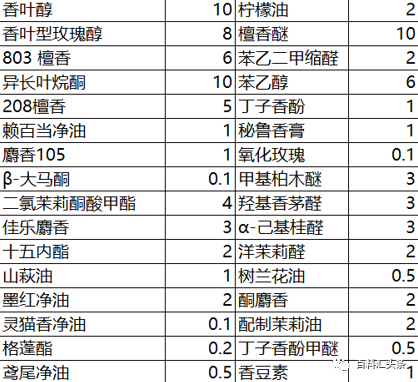 2、東方香型香精配方舉例——東方香型香精配方(質(zhì)量份)