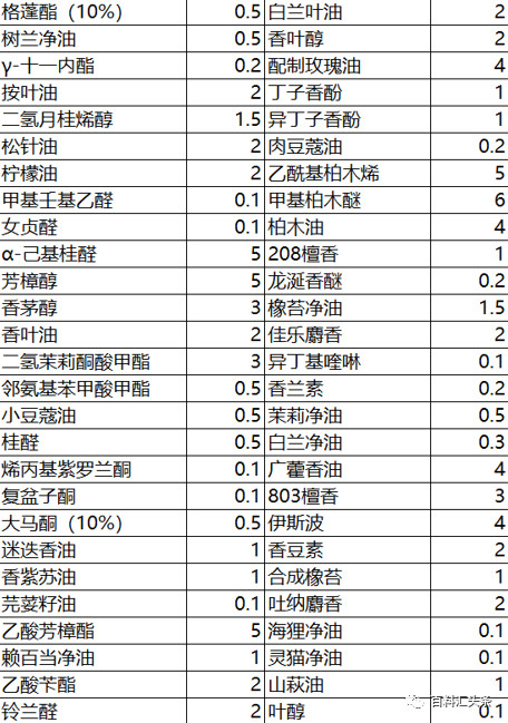 3、東方香型香精配方舉例——東方香型香精配方(質(zhì)量份)