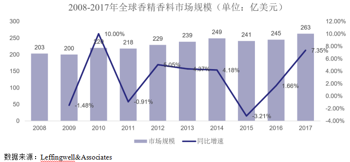 香精香料行業(yè)屬于弱周期行業(yè),市場規(guī)模隨著全球經(jīng)濟(jì)的發(fā)展和人類生活水平的提高穩(wěn)步增長。