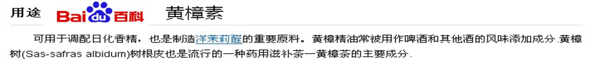這兩個網(wǎng)頁都表明這兩種原料適合用作食品用香料,真的可以嗎?我國GB2760-2011中并未包含黃樟素和異黃樟素。這種誤導(dǎo)作用需要引起高度重視。