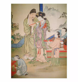 清末民國日本來淵繪《唐玄宗楊貴妃吹笛之圖》局部