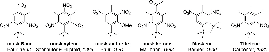 1888年,科學(xué)家艾伯特·波爾是第一個(gè)創(chuàng)造出人工麝香的人。他發(fā)現(xiàn)麝香的過程完全是一個(gè)巧合——在他研究TNT炸藥的時(shí)候,突然聞到了一股類似麝香的香味。這種化合物后來被稱為Nitro-musk。這種物質(zhì)就是人工麝香家族中的第一位成員,但后來由于它的不穩(wěn)定性和輕微毒性被禁止使用了。后來發(fā)明的多環(huán)麝香(polycyclicmusk)跟天然麝香的氣味最相似,不過造價(jià)也很高昂,它在香水業(yè)被廣泛使用。