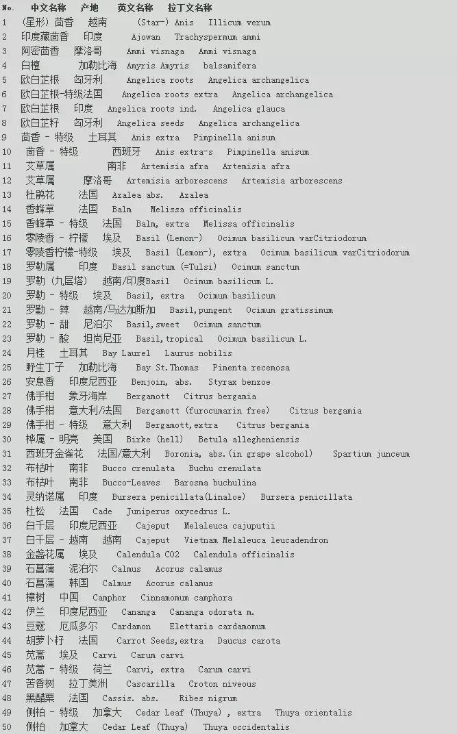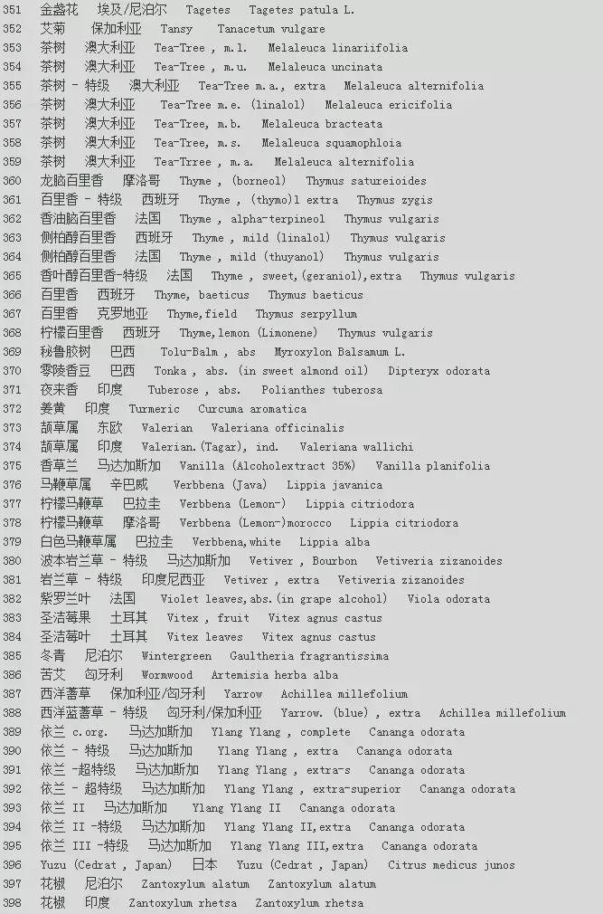 世界各地精油的中文名、英文名、拉丁文名,太詳細啦,收藏吧,方便以后查閱(圖片較多請耐心等候,點擊圖片可放大查看)。